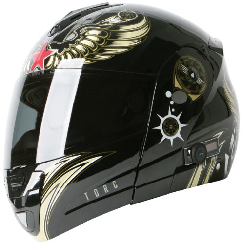 Searching for the best TORC T22B Interstate Modular Helmet with Blinc 2.0 Stereo Bluetooth Technology and 'Aviator' Graphic (Black, Medium); Congratulations! Check the specifications, features and feedback from customer feedback include price controls and information more satisfactory TORC T22B Interstate Modular Helmet with Blinc 2.0 Stereo Bluetooth Technology and 'Aviator' Graphic (Black, Medium) product reviews! When you have 500 miles of winding interstate in front of you, you need equipment you can count on. The feature packed TORC T22B Interstate is exactly that kind of product. A soft, removable comfort liner offers a great fit, suitable for long days in the saddle. The one-button and flip-front design gives you the versatility you need, allowing you to stay cooler and be able to talk to your riding buddies while stopped at the nearest point of interest without removing your helmet. The drop down sunscreen comes with 3 interchangeable lenses; dark tint for bright days; light smoke for when you need it; and a yellow highlighting lens to enhance and define the terrain on those darker, overcast days. Of course, there are adjustable vents on the top of the shell and the chin so you can control the amount of airflow for your comfort. This amazing modular helmet comes fully equipped with the ultimate in connectivity: Blinc III. Using Bluetooth 2.0 EDR, this unit pairs in seconds to your Bluetooth enabled phone, MP3 player and GPS device and offers intercom functionality up to 50 meters away. Other features in the T22B include two speakers, up to 6 hours of continuous talk time and 100 hours of standby time, FM radio tuner, LED screen for pairing, a noise cancelling mic, full duplex communications with DSP filter, self-adjusting volume, and glove friendly and waterproof controls. | TORC T22B Interstate Modular Helmet with Blinc 2.0 Stereo Bluetooth Technology and 'Aviator' Graphic (Black, Medium)