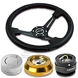 NRGSRK140HRG+200CF+101LS+018R, NRG Innovations 13.78" 350mm 3" Deep Dish Style Black Leather Red Stitch Black Spokes Racing Steering Wheel Combo with 6 Hole Short Hub Adapter with Gen 2.0 Carbon Quick Release with Silver Lock Hub Kit SRK-140H